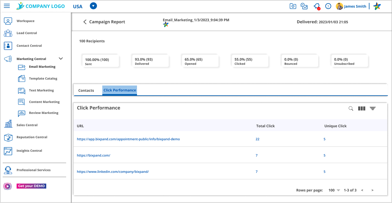 • Total Click by contact