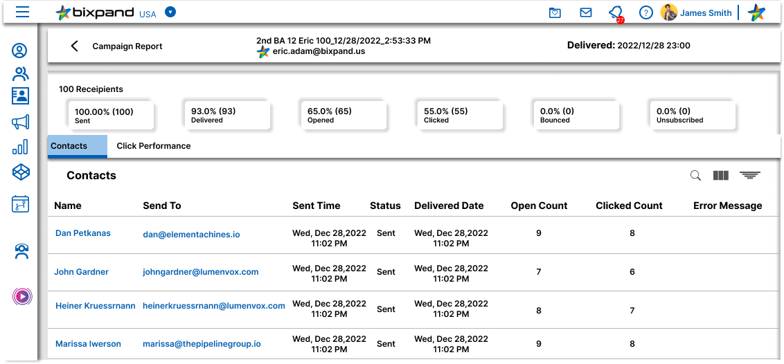 Send, Open, Click & activity reports.